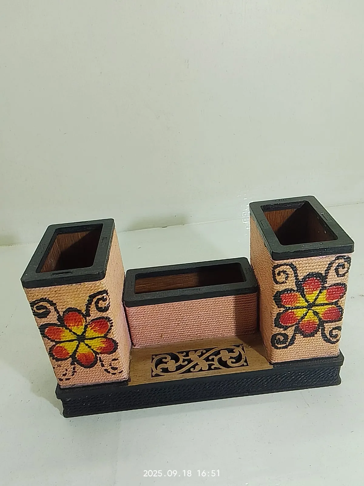 Wooden Hand-Painted Pen Holder